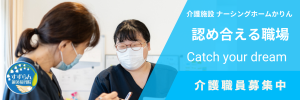 ナーシングハウスかりんでは明るく元気いっぱいで一緒に働く仲間を募集しております。笑顔に溢れる空間を私たちと一緒に作りませんか?